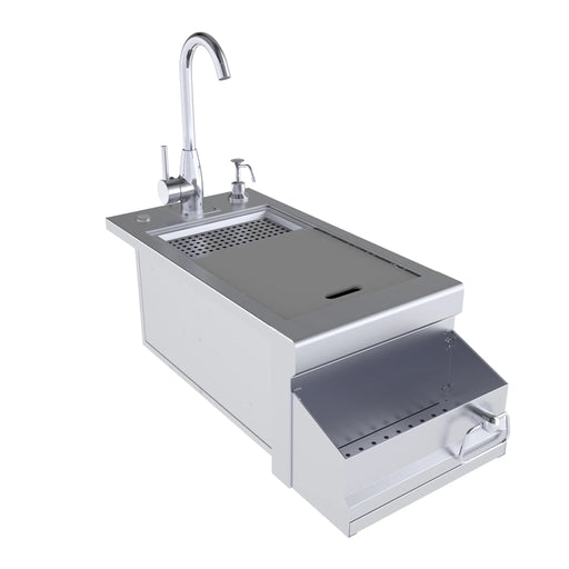• Sunstone 18" Combo Paper Towel Holder/Cutlery Drawer with Cutting Board & Insulated Ice Chest Dry Storage Drawer with Drain SBC18DPIC
